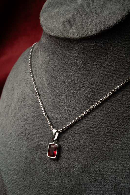 Cadena Pearl con Rectangle Gem Red