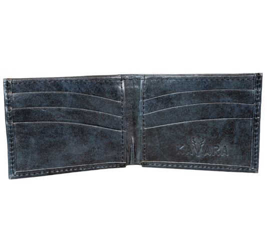 Billetera Grande Marron Oscuro Vintage interior Azul Vintage