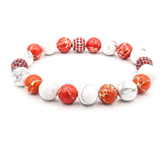 Pulsera Triple Disco Ball Acero Inoxidable White and Red